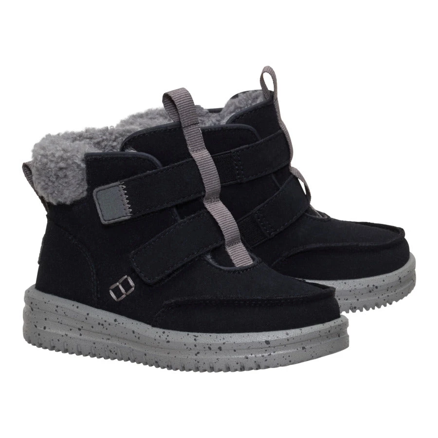 The Bradley Toddler Cozy is a big (sneaker) boot for little dudes. Made from tough but supple faux suede with a soft, warm sherpa fleece lining, it can handle rough-and-tumble playtime while keeping feet comfy. Instead of laces there’s a double strap closure that toddlers can fasten and unfasten themselves.