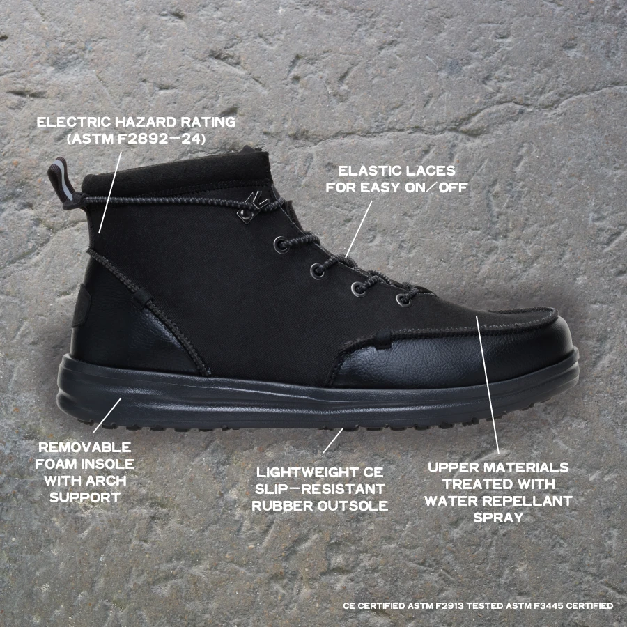 - ASTM F2913-11 tested, CE certified Meets or exceeds EN ISO 20347: 2022+A1:2024 OB SR