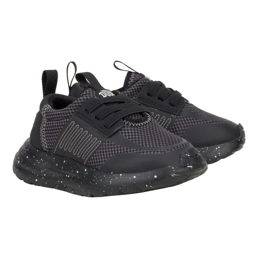 Varsity level kicks for varsity level fits. Extra stretch, extra wide opening and extra cool heel pull tabs make these the easiest kicks your kiddo will ever put on. Take this open mesh upper, stretch laces and speckled midsole and hit the playground.