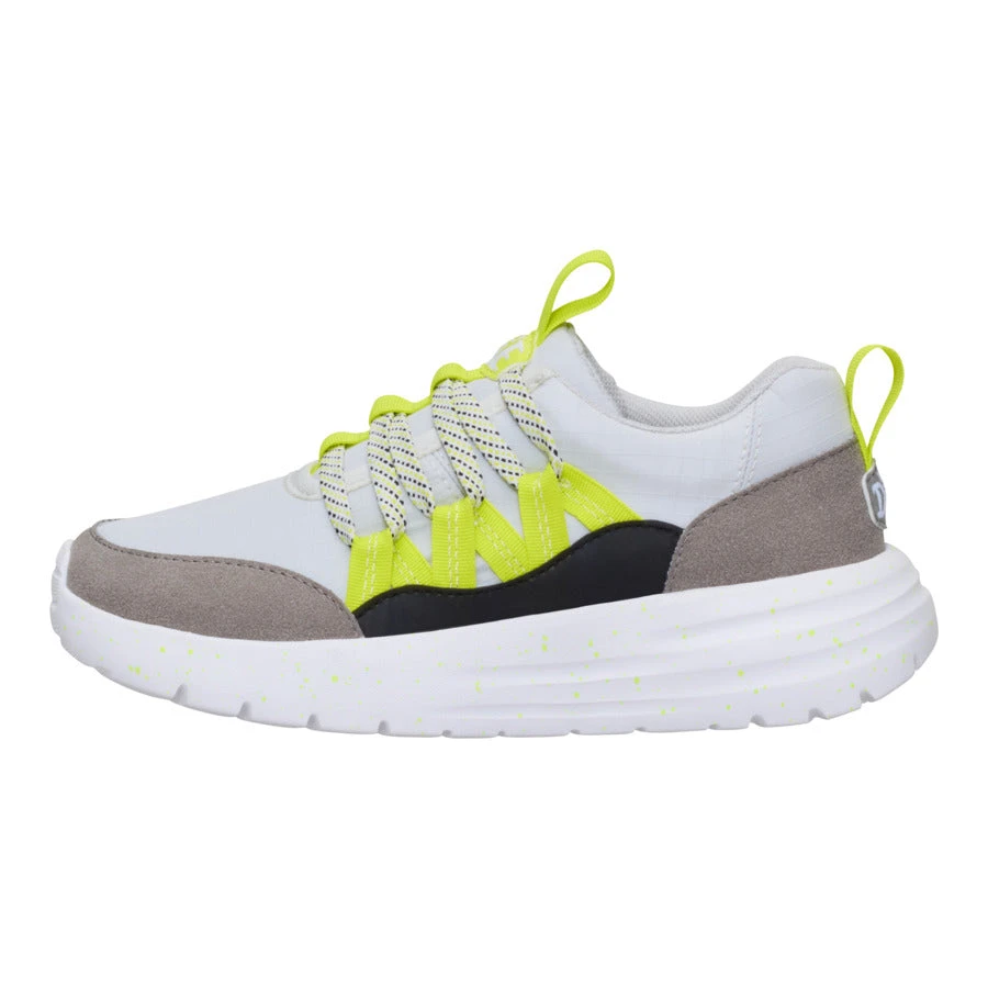 Built for backyard explorers, treehouse architects, and trailblazing champions. The HEYDUDE Sirocco Trek Youth Sport is where comfort meets cool in one seriously lightweight sneaker. With an ultra-flexible outsole, breathable upper, and no-tie laces (because who has time for tying?), this shoe is made to move as fast as their imaginations. Whether they’re racing through the park, hiking with the fam, or just owning recess—the Sirocco Trek Youth keeps up without slowing them down. Dirt? No biggie.Â