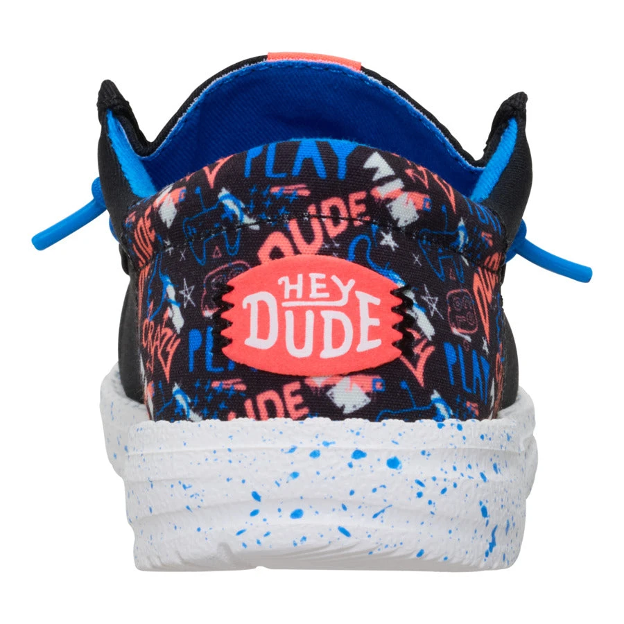 Hit play on easy, breezy comfort and casual style in these Wally Funk shoes for kids. They’re made from textile material with a fun video game print along the heel. They have a light, flexible sole and are easy to step into, fitting snugly thanks to stretchy laces that don’t need tying. A new high score!