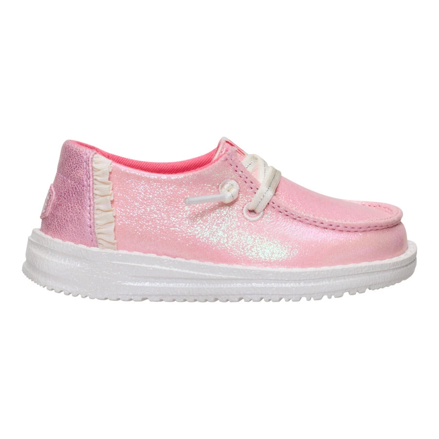 Add some dazzle to the day in these twinkling Wendy shoes for toddlers. They sparkle with a shimmery Textile upper that’s accented with a fun ruffly detail. The easy-on design includes a wide collar that kids can step right into and elastic laces that don’t need to be tied. They’re light, bendy and comfy for all-day adventures.